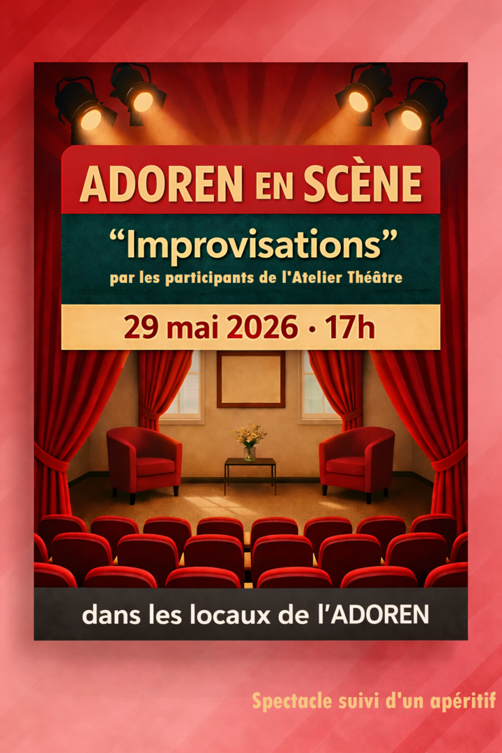 Les participants de l’Atelier Théâtre vous proposent de venir les écouter et les soutenir lors d’un spectacle entièrement consacré à des improvisations.